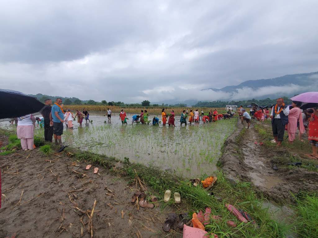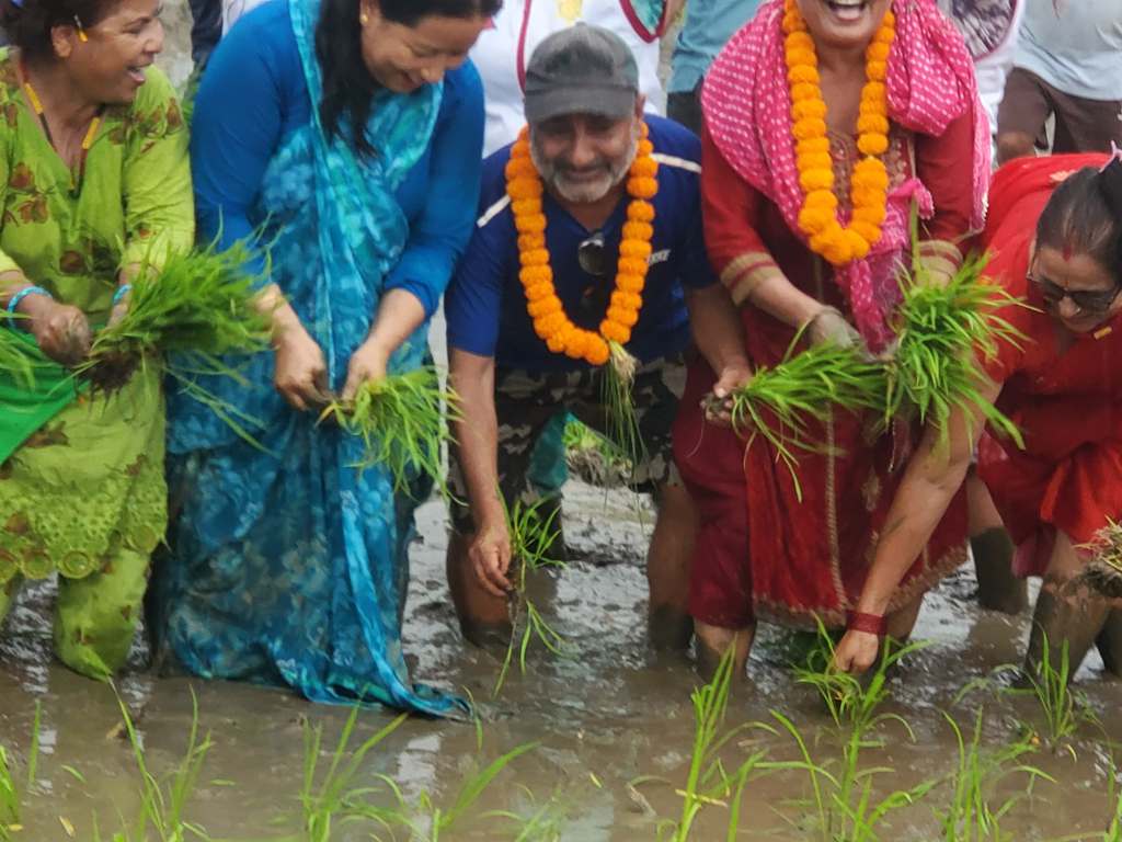 बिचमा भाका हाल्न र धानको बिउको मुठो बोकेर नेपालका चर्चित हास्य कलाकार हर्के हवल्दार टेलिसिरियलका निर्माता तथा प्रमुख पात्र हर्के हवल्दार बिष्णु सापकोटा एक्कासि पुगेर गित गाउँदै, धान रोप्न थाले । केही समय मेयर लामा लगायत अरु सँगपनि उनले हिलो छ्यापाछ्यप गर्न लागे र हिलोबाट आफुलाइै बचाउन बेस्सरी भागेको देख्दा सबैजनाको ध्यान एकछिन त्यो दृश्यले तान्यो ।