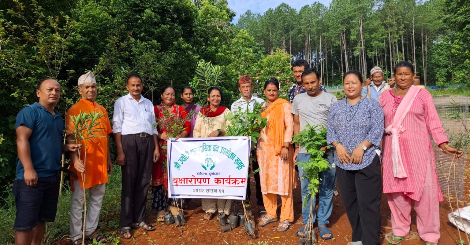 हेटौंडा । हेटौंडा–१८ स्थित ज्योति सामुदायिक वन उपभोक्ता समूहले नवनिर्मित भवनको उद्घाटनको पूर्वसन्ध्यामा वृक्षारोपण कार्यक्रम आयोजना गरेको छ।