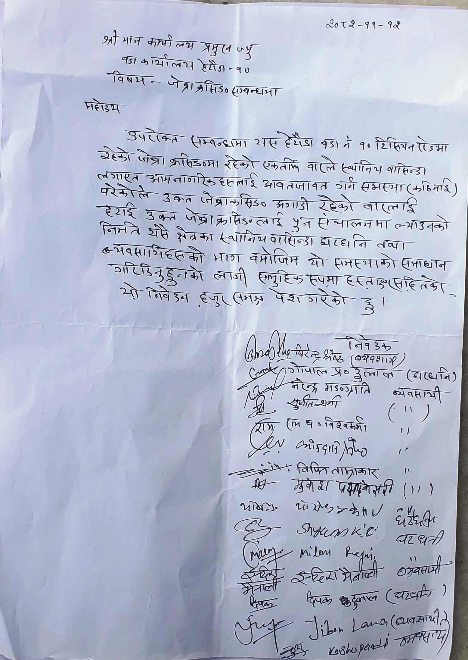 १७/१८ जनाको हस्ताक्षरसहितको निवेदन सम्बन्धित निकायहरूमा बुझाइएको एक सरोकारवालाले जानकारी दिएका छन्।